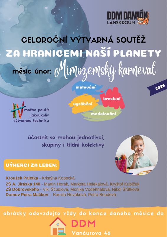 Celoroční výtvarná soutěž Za hranicemi naší planety pokračuje únorovým tématem Mimozemský karneval.