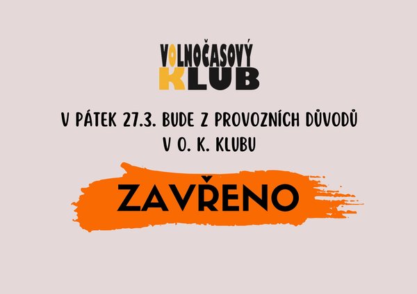 v pátek 27. 3. O. K. klub uzavřen