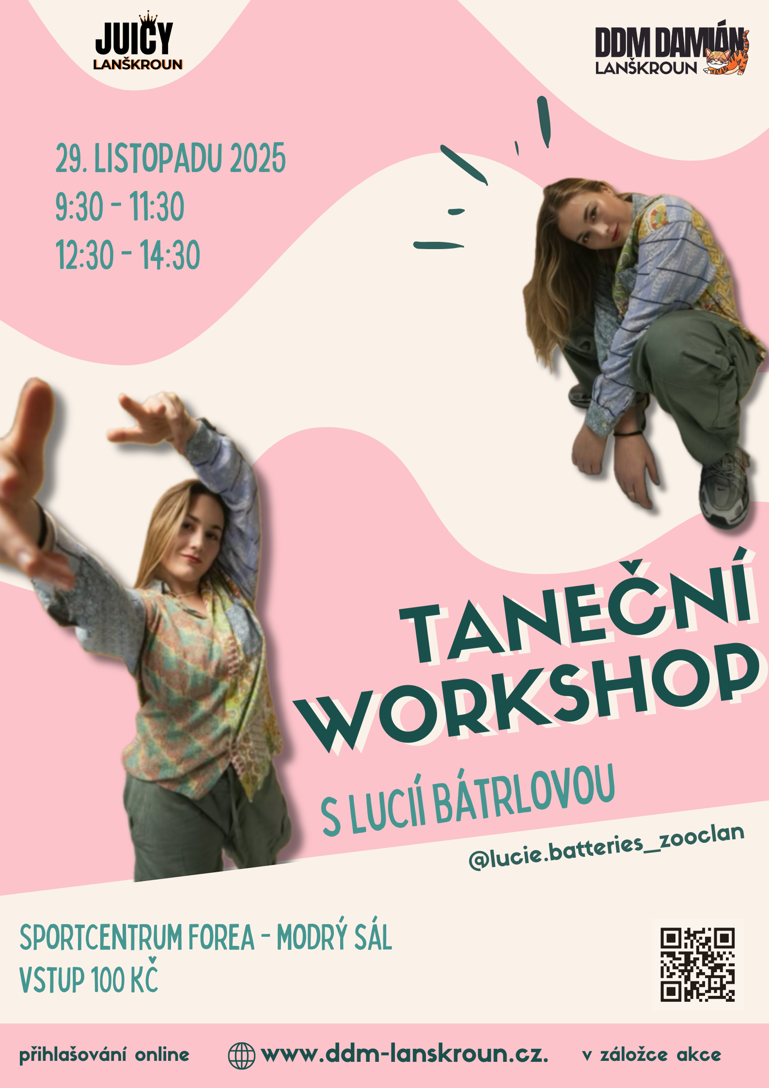 Zveme vás na jedinečný taneční workshop s Lucií Bátrlovou, který se uskuteční 29. listopadu 2025 v časech: